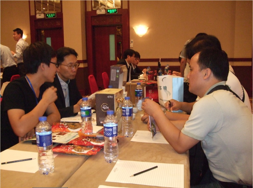 會(huì)上,公司人員仔細(xì)研究韓國(guó)參會(huì)企業(yè)目錄,積極踴躍與5家以上韓國(guó)相關(guān)企業(yè)洽談并達(dá)成進(jìn)一步互相交流意向。其中生產(chǎn)經(jīng)銷(xiāo)保健酒、燒酒等產(chǎn)品的“堤川韓藥營(yíng)農(nóng)組合法人”,生產(chǎn)銷(xiāo)售各種果汁飲料、速食面等產(chǎn)品的“聞慶五味子公司”以及進(jìn)口天然保健食品的“DUCK HEUNG SPECIAL INDUSTRY Co.”等韓國(guó)商家都有合作意向,待會(huì)后雙方再做更加深入細(xì)致的了解溝通。